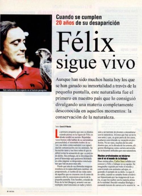 Ya desde niño sentía gran afición por todo cuanto acontecía en la naturaleza, y de forma especial me atraía la vida y costumbres de la fauna. Y Félix era para mí un ídolo al que admiraba y seguía a través de sus libros y de sus múltiples intervenciones en programas de radio y televisión, tales como "La Aventura de la Vida”, "Fin de semana”, "A toda Plana”, "Vida Salvaje”, "Planeta Azul”,...